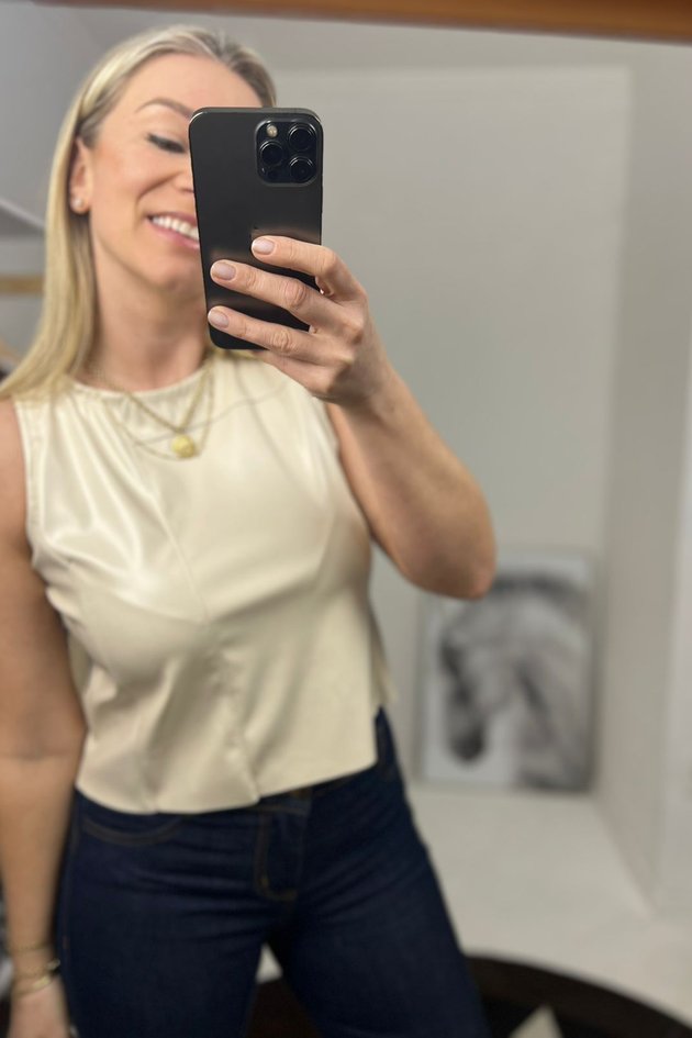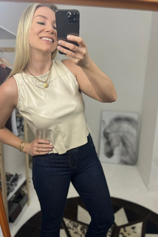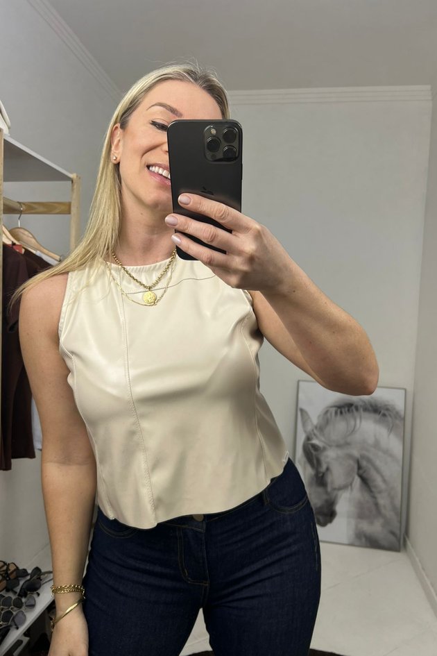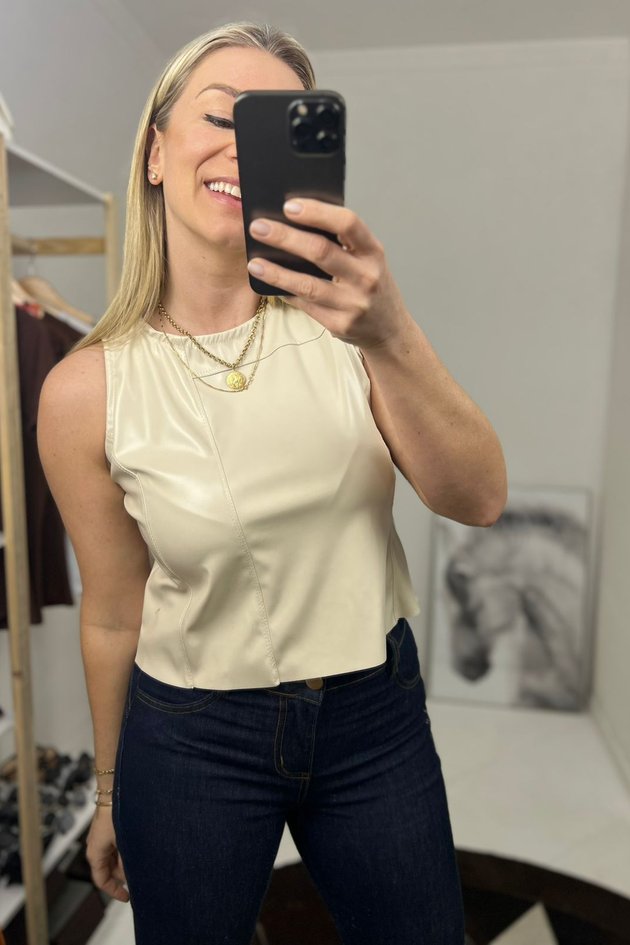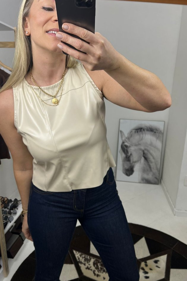 A Blusa Feminina Courino Cabana é uma peça moderna e consciente, confeccionada em Courino Sintético que adicionam sofisticação e características ao visual.