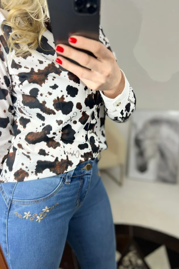 A Camisete Zoe é confeccionada em 90% poliéster e 10% elastano, apresentando uma textura com toque de pêssego, fluìdo, confortável devido ao elastano. De Manga longa, a camisete nos trás detalhes que nos deixam ainda mais única e curinga para o Closet. Possui modelagem com pence para afinar o corpo. A peça trás punho quadrado com botões. Na região frontal conta com gola tradicional e fechamento seguido com botões, que deixam o look ainda mais elegante e confortável.