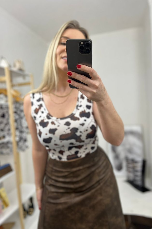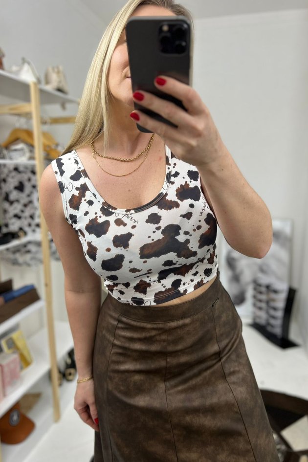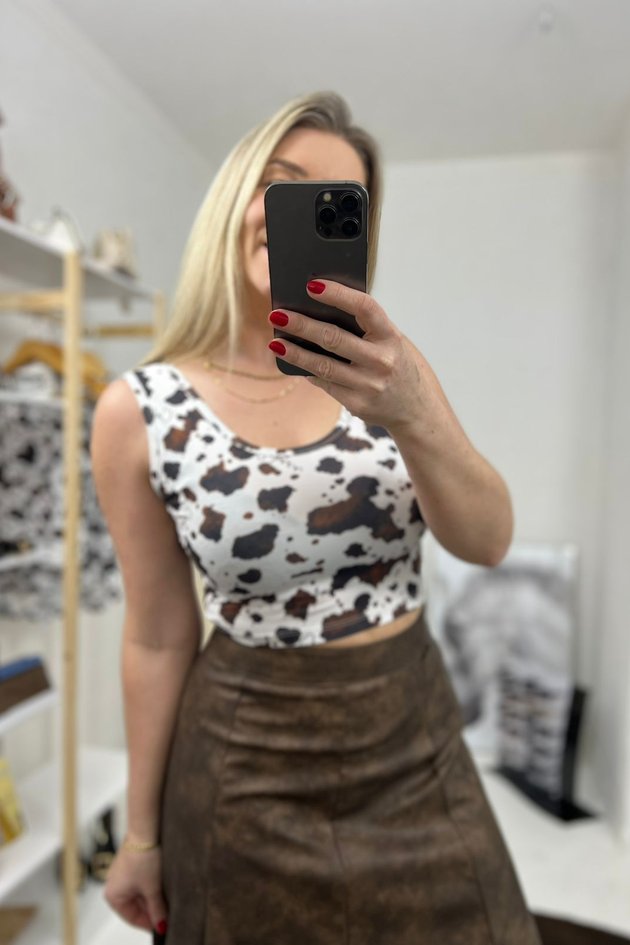 O cropped possui gola redonda e costas estilo nadador, conferindo um visual moderno e esportivo, além de ser uma peça leve, ideal para o verão. A modelagem ajustada valoriza a silhueta, sem perder o conforto.