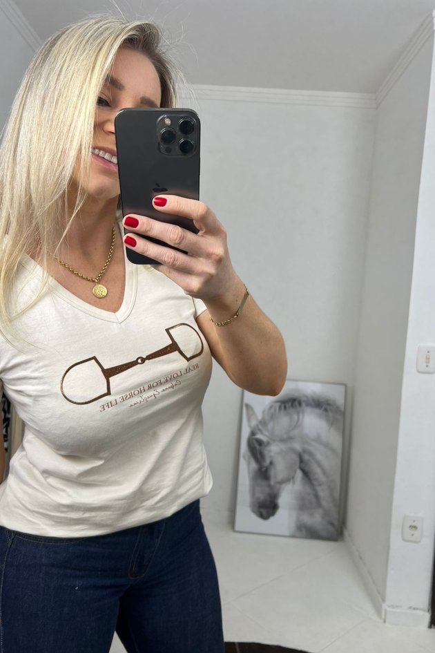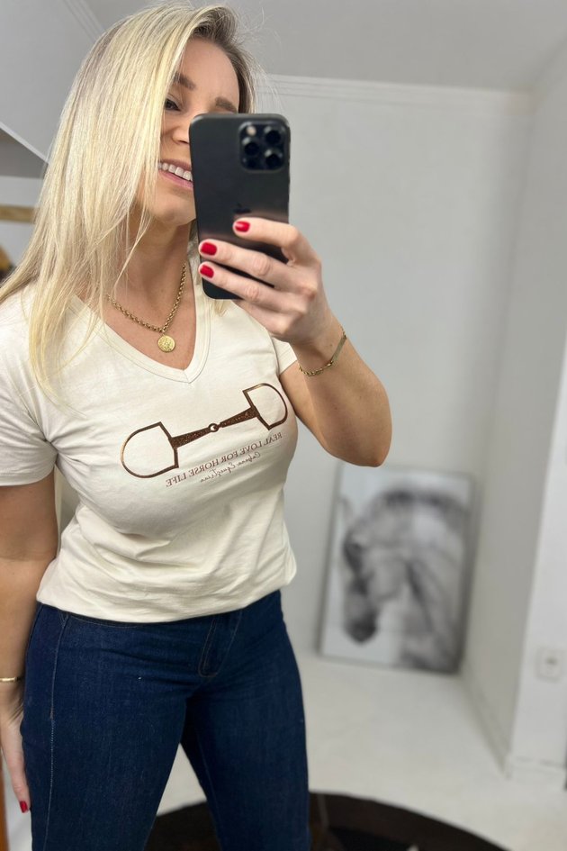 Versátil e moderna, a T-Shirt Bridão Gabi é perfeita para quem busca um visual casual com o charme equestre característico da Cabana Equestrian.