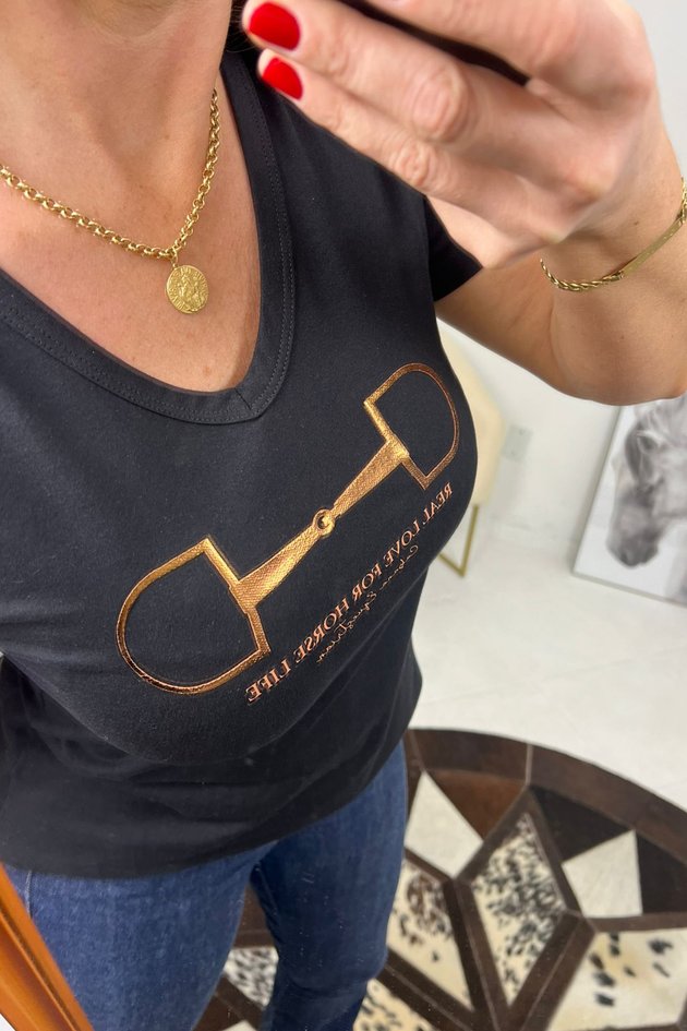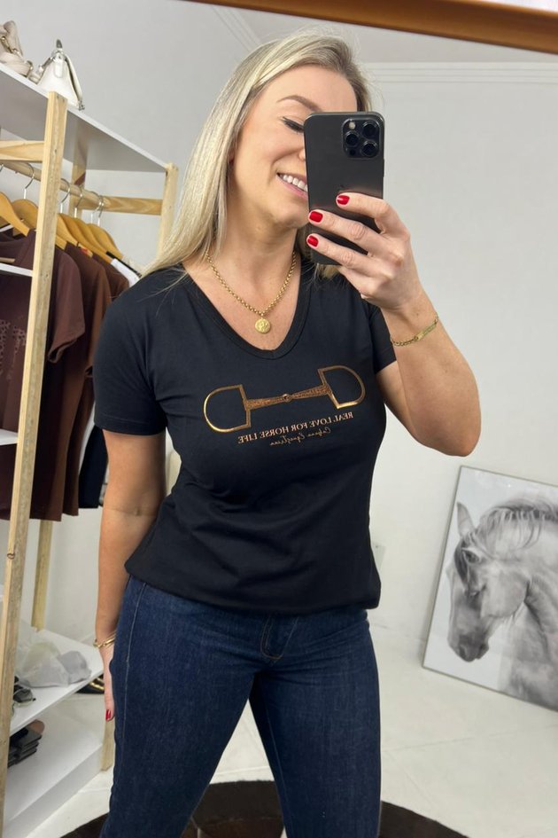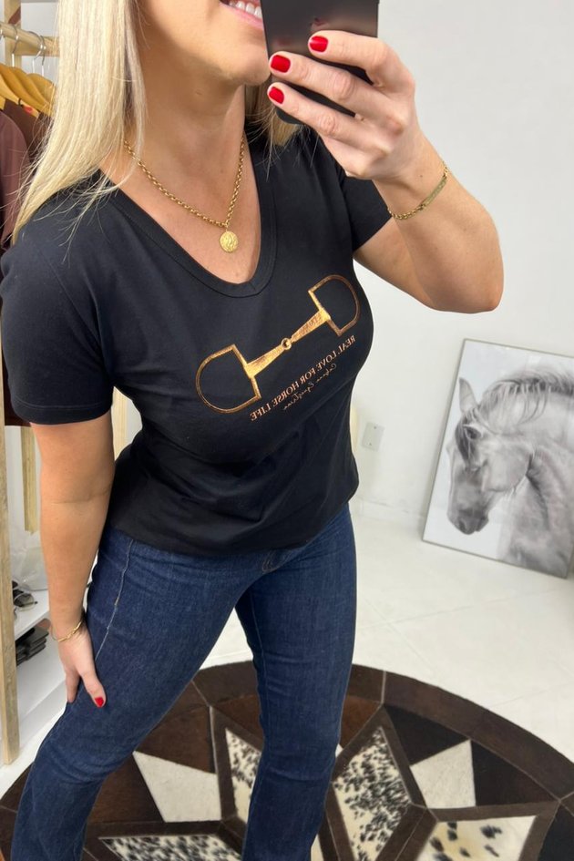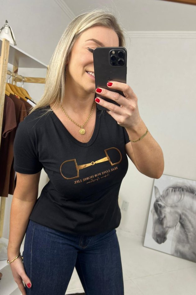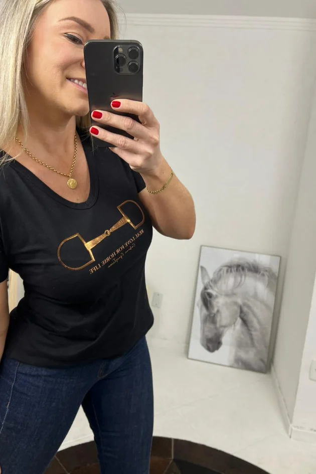 Versátil e moderna, a T-Shirt Bridão Gabi é perfeita para quem busca um visual casual com o charme equestre característico da Cabana Equestrian.