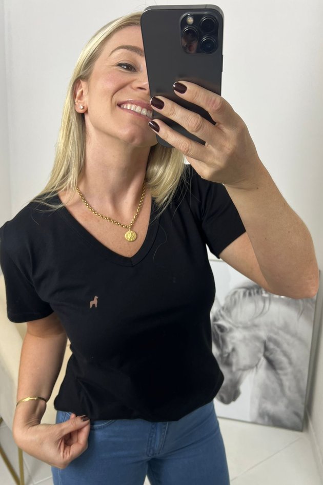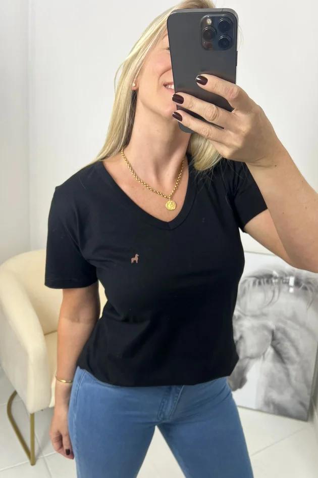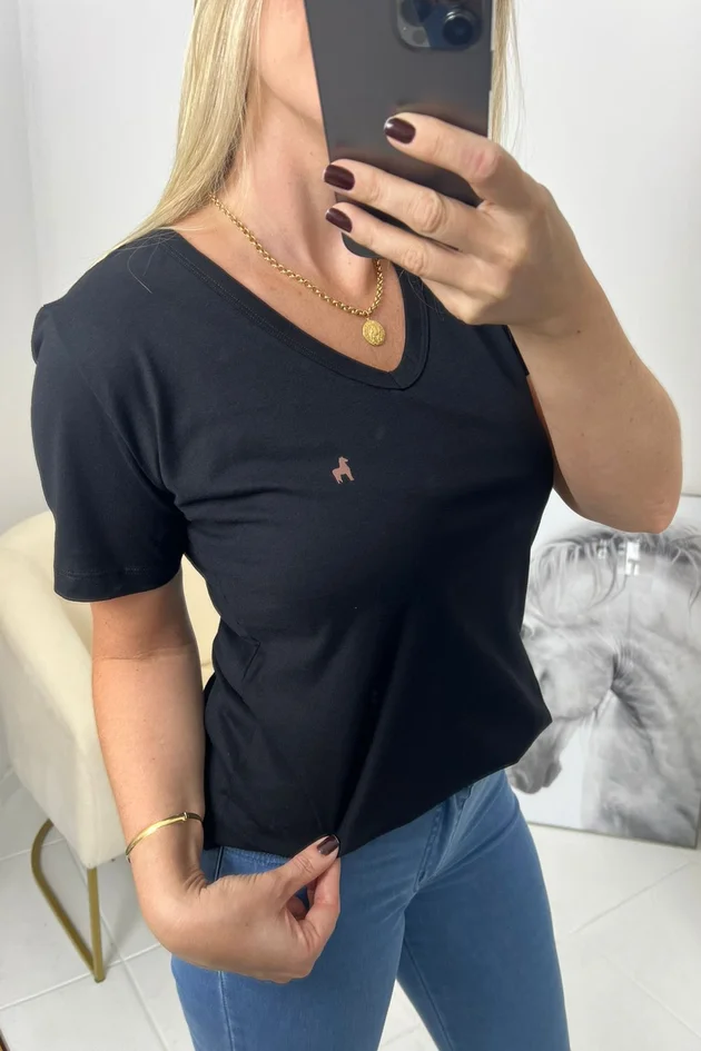 Confeccionada em 100% algodão, a T-Shirt Márcia proporciona toque macio, leveza e conforto térmico. Sua modelagem levemente acinturada com decote em V valoriza o colo e garante um caimento impecável, ideal para quem busca elegância no dia a dia.