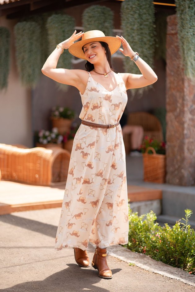 LConfeccionado em tecido de 90% poliéster e 10% elastano, o Vestido Emanuely oferece toque macio, elasticidade na medida e caimento leve que acompanha o movimento. Sua modelagem longa com alças proporciona linha vertical elegante e alongada, valorizando a silhueta com simplicidade e conforto. A estrutura do tecido garante boa sustentação sem perder a fluidez, tornando a peça versátil e agradável de usar em diferentes ocasiões.